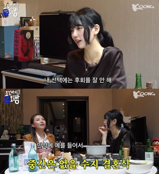 조현아는 “예전에 점 봤을 때 31살에 결혼하다고 했다며?”라고 물었다. 이에 수지는 “내년이네”라고 수긍하며 “거기서 31세에 결혼을 하면 베스트라고 했다. 만약에 내년 결혼해도 후회는 안 할 것 같다. 내 선택에 후회를 잘 안 하는 편”이라고 말했다.