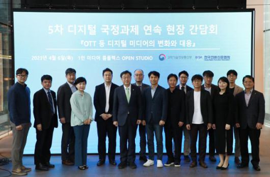 과학기술정보통신부는 6일 오후 서울 중구에 위치한 '1인 미디어 콤플렉스'에서 제5차 디지털 국정과제 릴레이 간담회를 열었다. 이번 간담회는 국내 OTT 산업 경쟁력을 키우고 해외 진출을 돕기 위한 정책 방안이 논의됐다. 티빙, 왓챠, 스튜디오드래곤 등 주요 콘텐츠 관련 기업 관계자들이 함께했다.