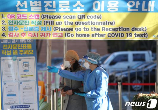 부산 연제구 연제구보건소 선별진료소에 신종 코로나바이러스 감염증(코로나19) 검사를 받으로 온 시민에게 의료진이 안내를 하고 있다. 2022.11.15/뉴스1 ⓒ News1 |