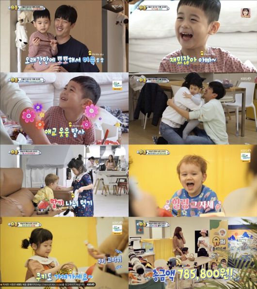 7일 방송된 KBS2 ‘슈퍼맨이 돌아왔다’(이하 ‘슈돌’) 473회에서는 ‘쉿! 엄마에겐 비밀이야’ 편이 그려졌다. ‘슈돌’에 첫 등장한 5살 정우와 아빠 강경준은 엄마 없는 하루 동안 무계획 일탈로 인생의 첫 달콤함을 맘껏 누렸다. 젠은 소유진과 세은을 만나 플리마켓을 준비하며 돈독해진 관계를 보였다.