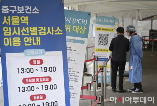 지난달 28일 서울 중구 서울역 코로나19 선별진료소에서 한 시민이 PCR검사를 받기 위해 접수를 하고 있다. /정재훈 기자 |