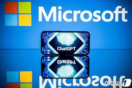 마이크로소프트(MS) 로고와 챗GPT의 이미지 화면. MS는 챗GPT의 개발사 오픈AI와 파트너십을 맺고 대규모 투자 계획을 발표했다. /AFPBBNews=뉴스1 |