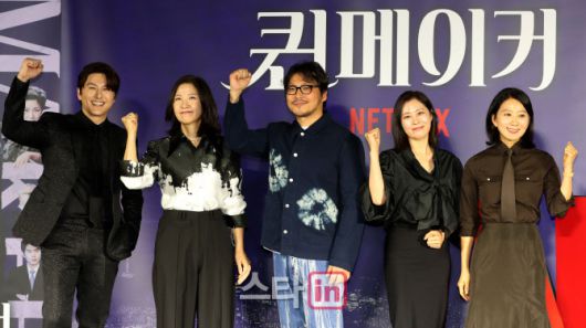 [이데일리 스타in 방인권 기자] 배우 류수영과 서이숙, 오진석 감독, 문소리, 김희애(왼쪽부터)가 11일 서울 CGV용산아이파크몰에서 열린 넷플릭스 시리즈 '퀸메이커' 제작보고회에서 포토타임을 갖고 있다.