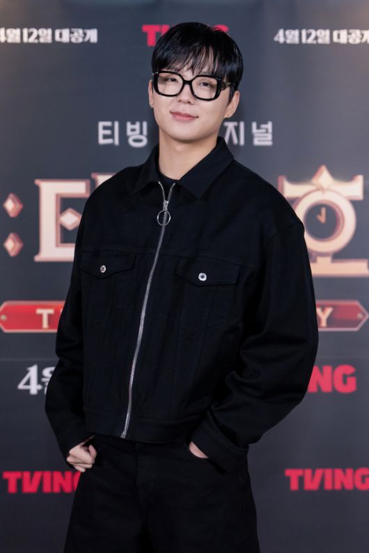가수 래원이 12일 온라인으로 진행된 티빙 오리지널 '더 타임 호텔' 제작발표회에 참석해 포즈를 취하고 있다. [사진=티빙] |