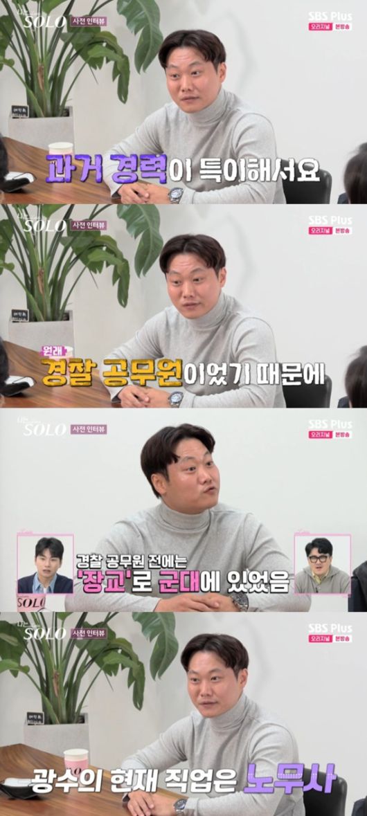 광수가 "과거 경력이 특이하다, 원래 경찰 공무원이었다"라고 밝혀 눈길을 끌었다. 경찰 공무원 전에는 해군 장교로 군대에 있었다고. 해군 장교 중위로 전역한 광수는 5년간 경찰로 근무하다 현재는 노무사로 일하고 있다고 밝혀 놀라움을 더했다.
