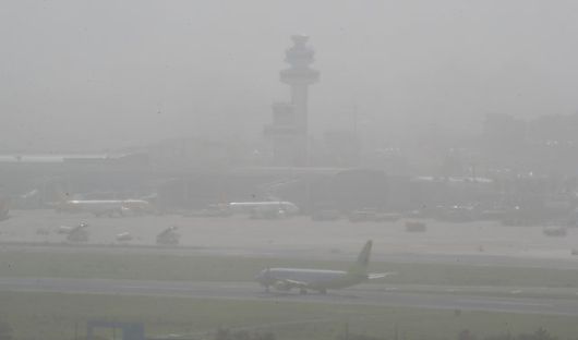 제주에 미세먼지 주의보가 발령된 12일 오전 제주시 도두봉에서 바라본 제주국제공항이 뿌옇게 보이고 있다. 2023.4.12/뉴스1 |