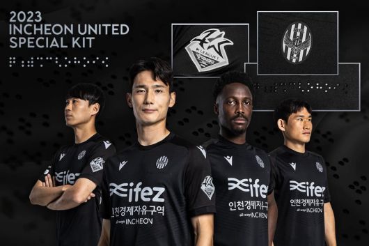 인천의 2023시즌 스페셜 킷은 시각장애인의 보이지 않는 아픔과 축구로 하나된 사회를 지향하는 의미가 담겼다. 올블랙 색상 바탕에 회색 톤의 마킹 및 패치, 상의 전면 구단 엠블럼 윗부분과 후면 목 부분에 시각장애인이 직접 손끝으로 읽을 수 있도록 구단명이 훈맹정음 점자로 표기돼 있다.