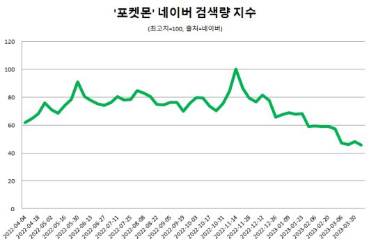하지만 1년이 지난 지금 포켓몬 열기는 잦아들고 있는 모습이다. 새로운 캐릭터 마케팅이 필요해졌다는 얘기다. 네이버데이터랩에 따르면 ‘포켓몬’ 검색량 지수는 작년 11월 중순 100을 기록한 후 꺾여 지난달 말에는 46으로 떨어졌다. 식품업계 관계자는 “최근에는 마트에서 ‘포켓몬빵’을 구하기가 어려운 수준이 아니다”면서 “쉽게 싫증을 내는 젊은 층에 유행하다 보니 새로운 캐릭터와 마케팅이 나와야할 시기”라고 봤다.