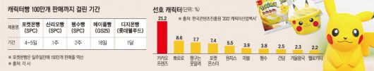 식품업체들은 포켓몬의 인기를 뛰어넘는 새로운 캐릭터를 찾는데 분주하다. 이와 관련 콘텐츠진흥원의 ‘2022 캐릭터 산업백서’에 의하면 소비자들이 가장 선호하는 캐릭터 10종 즁 1위는 카카오프렌즈(21.2%)였고, 뽀로로(8.6%), 짱구는 못말려(7.7%), 포켓몬스터(7.4%) 순이었다.