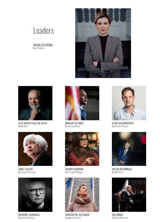 (서울=뉴스1) 이유진 기자 = 조 바이든 미국 대통령과 기시다 후미오 일본 총리, 루이스 이나시우 룰라 다시우바 브라질 대통령, 앤서니 앨버니지 호주 총리, 찰스3세 영국 국왕, 올라프 숄츠 독일 총리, 올레나 젤렌스카 우크라이나 영부인, 재닛 옐런 미국 재무부 장관, 축구선수 리오넬 메시와 킬리안 음바페 등이 미국 시사주간지 타임(TIME)이 선정한 2023년 '세계에서 가장 영향력 있는 인물(the most influential people)' 100인에 이름을 올렸다.