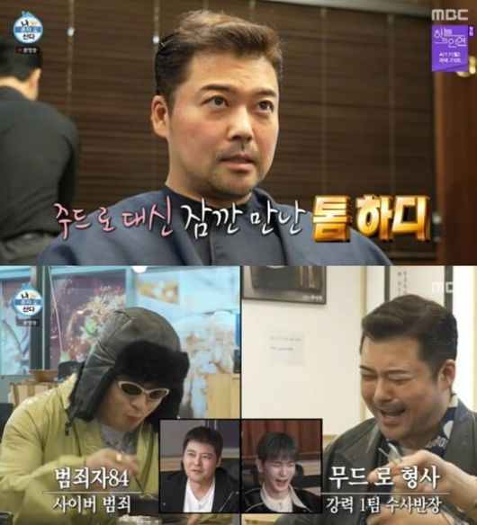 깔끔하게 넘긴 머리에 포마드를 바른 전현무는 "주드로 대신 톰하디가 됐다"라며 "무하디다"라고 자아도취감에 빠졌다. 이에 이장우는 "캐릭터 겹치잖냐"라며 "저도 살 빼서 도전해봐야겠다"라고 의지를 불태웠다.