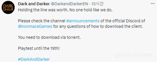▲ 다크 앤 다커 5차 테스트 소식 (사진출처: 다크 앤 다커 공식 트위터) |