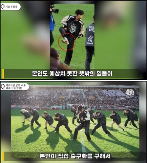 그는 “하프타임 공연 때 댄서 10여명과 함께 축구장 잔디 위에서 공연을 펼친 임영웅은 직접 축구화를 구해서 댄서 한 분 한 분에게 선물했다”며 그 이유에 대해 “댄서들에게도 이벤트를 선사한 것이지만, 그 이면에는 공연 직후 다시 해당 잔디에서 경기를 뛰어야 하는 선수들을 위해 일부러 축구화를 신고 공연을 펼친 것”이라고 설명했다.