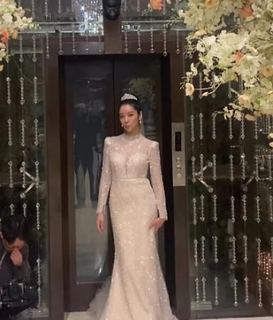 넷플릭스 오리지널 시리즈 '더 글로리'에서 최혜정 역을 맡은 배우 차주영이 웨딩드레스를 입은 사진을 공개했다.