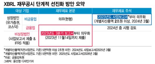 당국에서는 IFRS 공시 안정화, 기업 부담 등을 고려해 제한적으로 도입하다 올해 확대 방안을 확정했다. 글로벌 시장에서 XBRL 공시가 활성화됐고 코리아 디스카운트 해소 차원에서도 더 속도를 늦출 수 없다는 판단에서다.
