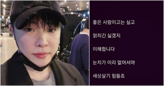 휘성은 18일 오전 사회관계망서비스(SNS) 계정에 “좋은 사람이고는 싶고 얽히긴 싫겠지. 이해합니다. 눈치가 이리 없어서야. 세상 살기 힘들죠”라는 글을 올렸다. 이어 “내가 처신을 알아서 하면 될 일”이라는 말을 덧붙였다.