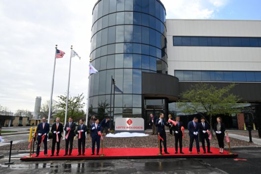 미국 뉴욕주 시러큐스 공장에서 진행된 행사에는 현지 임직원 약 500여명을 비롯해 이원직 롯데바이오로직스 대표, 마이클 하우슬레이던 미국 법인장 등 내부 경영진과 이훈기 롯데지주(004990) 경영혁신실장, 라이언 믹맥 오논다가 카운티장, 벤 월시 시러큐스 시장, 켄트 시버루드 시러큐스 대학교 총장 및 파트너사 등 약 70여명이 참석했다.