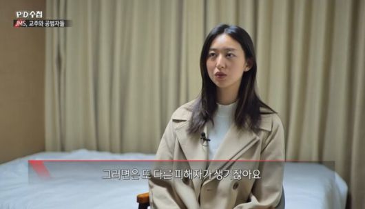 기독교복음선교회(JMS·제이엠에스) 교주 정명석(77)씨의 성폭력 피해자 메이플이 지난달 3일 공개돼 큰 사회적 파장을 부른 넷플릭스 다큐멘터리 <나는 신이다: 신이 배신한 사람들>에 이어 다시 한번 방송에 얼굴을 드러냈다. 메이플은 “또 다른 피해자가 생기는 것을 막기 위해서”라고 했다.