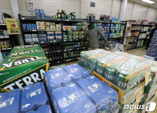 서울의 한 대형마트 맥주 판매대에서 한 시민이 제품을 고르고 있다. /사진=뉴스1 |