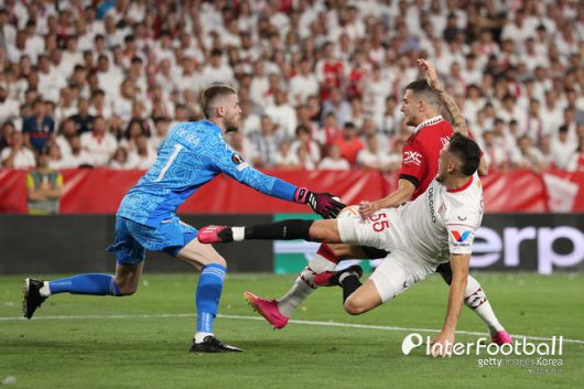 충격적인 두 번의 실책으로 경기를 내줬다. 먼저 전반 8분, 후방 빌드업에서 데 헤아가 매과이어에게 패스했다. 이후 매과이어가 세비야의 전방 압박에 둘러싸였고, 매과이어의 패스가 에릭 라멜라에게 차단됐다. 유세프 엔 네시리가 이어받은 뒤, 문전에서 침착한 마무리 슈팅으로 골망을 흔들었다.