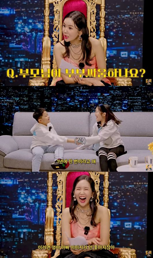 이어 "부모님이 부부싸움을 하냐"는 질문에 "일반적으로 아빠가 살짝 화내기는 한다. 1년에 한 번 한다"고 말했다. 그러자 준우는 "1년에 한 번은 아니다"고 했고, 지우는 "이러면 엄마 아빠 이미지가 안 좋아진다"고 재치있게 말했다.