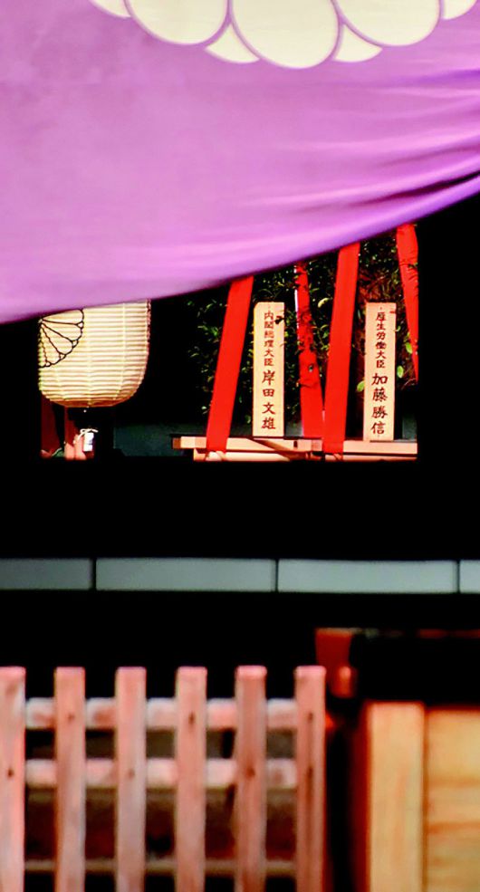 기시다 후미오(岸田文雄) 일본 총리가 21일 도쿄 야스쿠니신사에서 시작된 춘계 예대제(例大祭·제사)에 ‘내각총리대신 기시다 후미오’ 명의로 공물(사진)을 바쳤다고 교도통신 등 일본 언론이 보도했다. 야스쿠니신사는 도조 히데키를 비롯한 제2차 세계대전 A급 전범 14명과 일본의 각종 침략 전쟁에서 숨진 군인 등 246만여 명의 신위를 보관하고 있다.