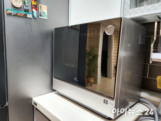 처음 봤을 때 크기가 다소 큰 듯했지만, 주방 한켠에 쏙 들어가 답답한 느낌이 없었다. 특히 전면 도어에 거울 디자인이 적용돼 개방감을 줬다.
