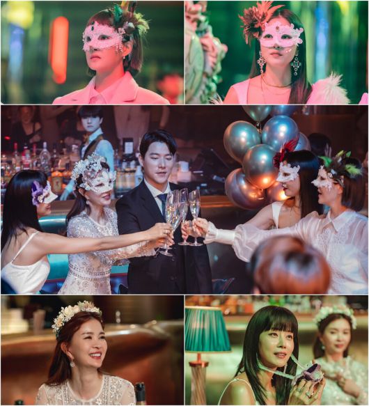 재이, 유나, 유정은 유정과 그녀의 연인 기도식(조태관)이 등장하자, 샴페인 잔을 부딪치며 파티의 열기를 지핀다. 이날의 주인공인 유정은 친구들의 진심 어린 축하에 소녀마냥 해맑은 미소를 짓고 있어 눈길을 끈다.