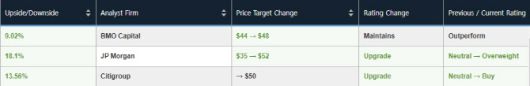 23일(현지시간) 미국의 경제전문매체 CNBC와 마켓워치 등에 따르면 지난 21일 BMO캐피털은 엑스포에 대한 투자의견 ‘시장수익률 상회’를 유지하면서 목표주가는 종전 44달러에서 48달러로 상향 조정했다. 이어 JP모건은 투자의견을 ‘중립’에서 ‘비중확대’로 높이고 목표주가 역시 35달러에서 52달러로 49% 올렸다.