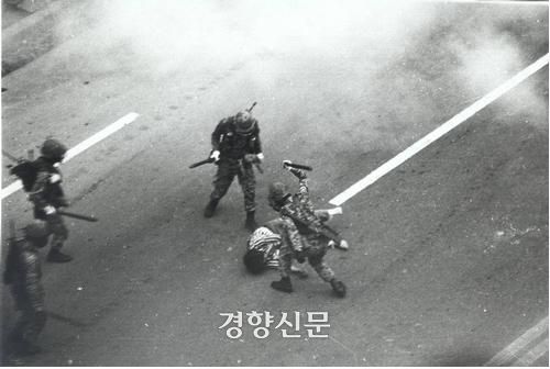 5·18 당시 광주 금남로에서 계엄군이 시민을 붙잡아 곤봉으로 구타하는 모습. |