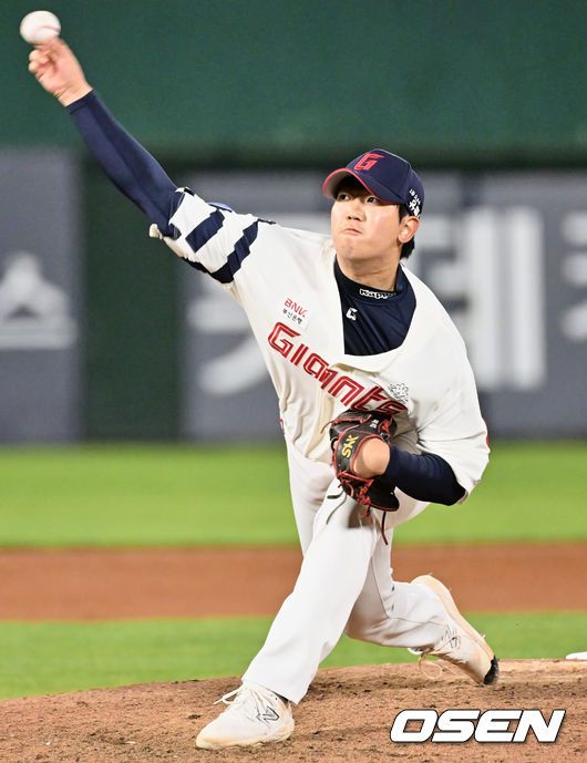 [OSEN=부산, 이석우 기자] 26일 부산 사직구장에서 2023 신한은행 SOL KBO리그 롯데 자이언츠와 한화 이글스의 경기가 열렸다. 롯데 자이언츠 최이준이 역투하고 있다. 2023.04.26 / foto0307@osen.co.kr