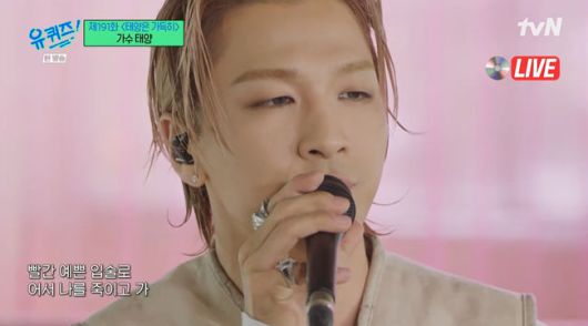 26일에 방송된 tvN '유 퀴즈 온 더 블럭'에서는 191화 '태양의 가득히' 특집으로 태양이 등장해 아내 민효린에 대한 러브스토리를 공개했다.