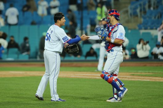 이승현이 ‘마무리투수’라는 것이 확인된 순간이다. 이승현은 김재환을 삼진 처리하며 이닝을 마쳤다. 9회에는 2사 후 연속 안타를 맞아 위기에 몰렸으나 이유찬에게 땅볼을 유도해 경기를 끝냈다. 호수비 덕도 봤다. 선두타자 양석환의 좌중간 장타성 타구에 김성윤이 전력으로 붙어 다이빙 캐치로 잡아냈다.