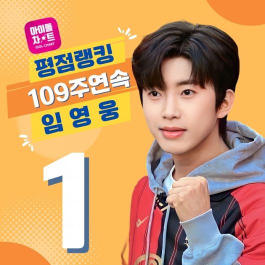 가수 임영웅이 아이돌차트 평점랭킹에서 109주 연속 1위를 차지하며 독주하고 있다.