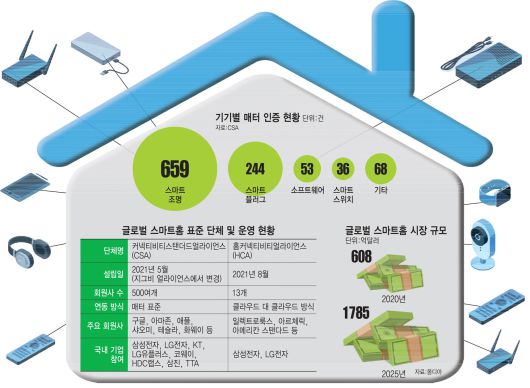 글로벌 표준화 단체 커넥티비티스탠더드얼라이언스(CSA)에 따르면 지난달 기준 매터 인증 건수는 1060건으로 집계됐다. 지난해 10월 매터 1.0 버전 발표 이후 6개월 만에 1000건을 돌파했다.