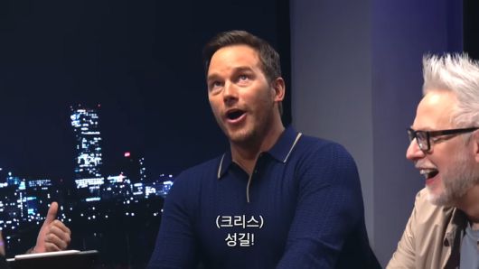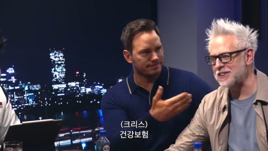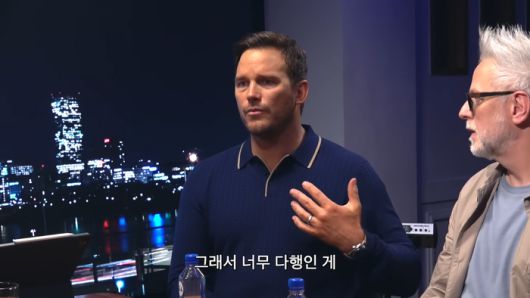제임스 건 감독은 “지금 이 순간이 최고의 순간이다. 크리스에게도 최고의 순간”이라며 텐션을 끌어올렸다. 그는 크리스 프랫을 가리키며 “얘 녹화 전에 엄청 긴장했다. 너희 만난다고 해서 계속 토했다. 촬영장 전부에 토했다”라고 말했다.