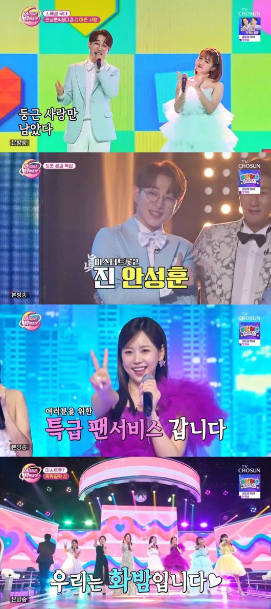 우승자 안성훈을 비롯해 '미스터트롯2' 톱7은 위풍당당 기세를 뽐냈고, '미스트롯' 멤버들 역시 지지 않는 에너지를 자랑하며 시청자들에게 웃음과 감동을 선사했다.