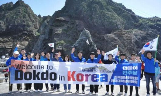 더불어민주당 전용기 의원(왼쪽 여덟 번째)이 2일 민주당 전국청년위원회·전국대학생위원회 소속 청년들과 독도를 방문해 기념 촬영을 하고 있다. 전 의원은 3일 페이스북을 통해 이 같은 방문 사실을 알렸다. 더불어민주당 전용기 의원 페이스북 캡처 |