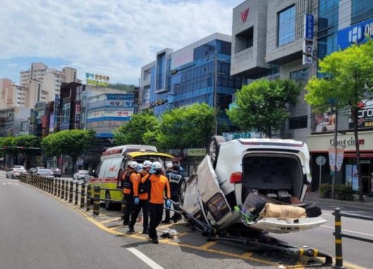 이후 카니발 차량은 중앙분리대를 들이받고 전복됐다.