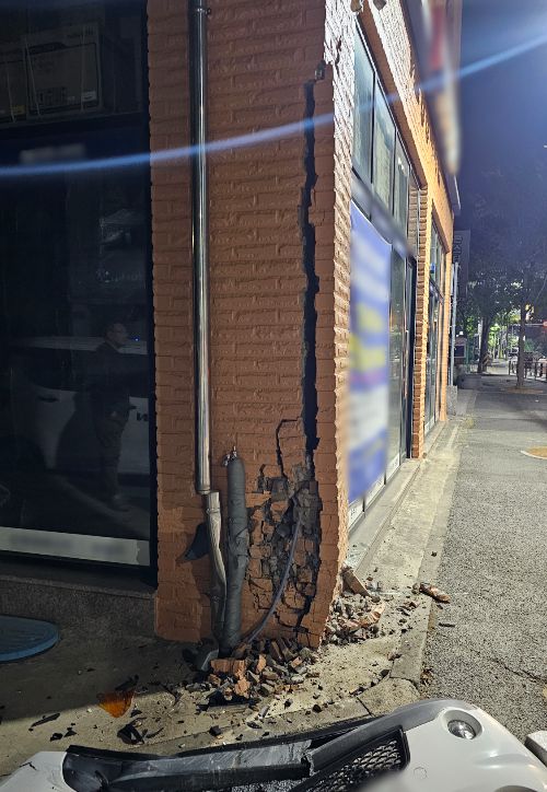 이 사고로 해당 건물 외벽이 파손됐다.