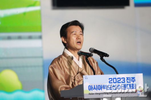 조규일 진주시장은 “대한민국 진주를 방문해 주신 참가자 여러분의 열정과 성원으로 ‘2023 진주 아시아역도선수권대회’가 사상 최대 규모로 열리게 된 것을 영광으로 생각한다”고 말했다.