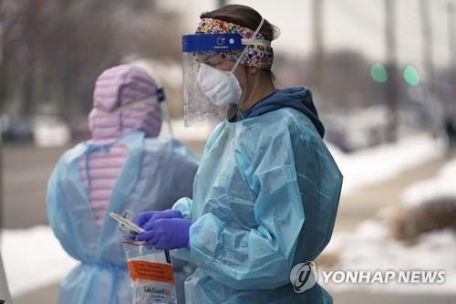 코로나19 검사를 진행 중인 미국 의료진의 모습[이미지출처=AP 연합뉴스] |