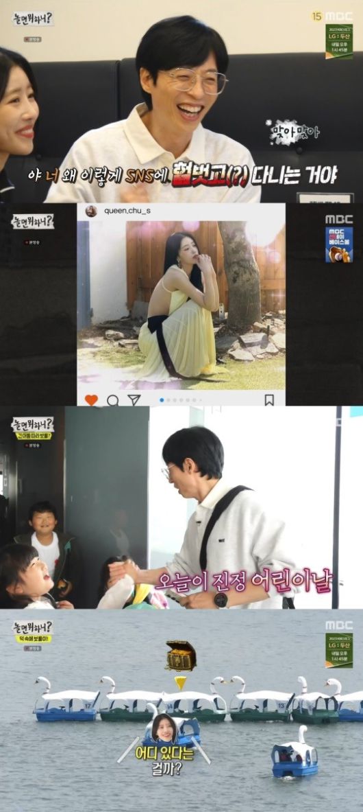 그런가하면 하하는 갑자기 식당에 걸려온 전화를 받더니 심각한 표정을 지었고 이이경은 의자 밑에 숨겨져 있던 '보물찾기' 힌트를 발견하자마자 도주해 웃음을 자아내기도 했다. 또 마지막 힌트는 가장 빨리 덕을 쟁취하는 용맹한 자가 보물을 얻을 것이였는데 이때 유재석은 용맹이라는 말을 듣고 오리배를 살폈다. 이후 이이경과 유재석이 보물을 찾았는데 진짜 보물은 유재석의 차지였다.