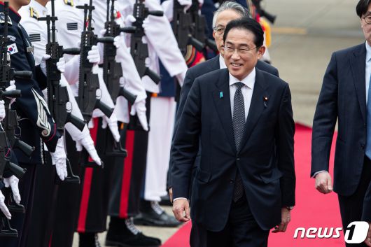 (성남=뉴스1) 유승관 기자 = 기시다 후미오(岸田文雄) 일본 총리가 7일 경기 성남시 서울공항에 도착해 이동하고 있다. 기시다 총리는 도착 직후 국립현충원을 방문한 뒤 용산 대통령실에서 윤석열 대통령과 한일 정상회담에 임할 계획이다. 일본 총리가 양자 정상회담을 위해 우리나라를 찾는 건 지난 2011년 10월 노다 요시히코(野田佳彦) 당시 총리 이후 이번이 12년 만이다. 2023.5.7/뉴스1