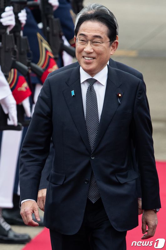 (성남=뉴스1) 유승관 기자 = 기시다 후미오(岸田文雄) 일본 총리가 7일 경기 성남시 서울공항에 도착해 이동하고 있다. 기시다 총리는 도착 직후 국립현충원을 방문한 뒤 용산 대통령실에서 윤석열 대통령과 한일 정상회담에 임할 계획이다. 일본 총리가 양자 정상회담을 위해 우리나라를 찾는 건 지난 2011년 10월 노다 요시히코(野田佳彦) 당시 총리 이후 이번이 12년 만이다. 2023.5.7/뉴스1