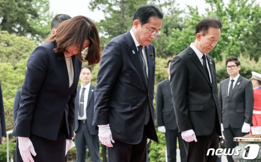 (서울=뉴스1) 사진공동취재단 = 기시다 후미오(岸田文雄) 일본 총리와 부인 기시다 유코 여사가 7일 방한 첫 일정으로 서울 동작구 국립서울현충원을 참배하며 묵념하고 있다. 2023.5.7/뉴스1kkorazi@news1.krCopyright ⓒ 뉴스1. All rights reserved. 무단 전재 및 재배포 금지.