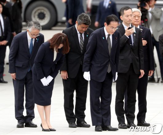 (서울=뉴스1) 사진공동취재단 = 기시다 후미오(岸田文雄) 일본 총리와 부인 기시다 유코 여사가 7일 방한 첫 일정으로 서울 동작구 국립서울현충원을 참배하며 국기에 대한 경례를 하고 있다. 2023.5.7/뉴스1kkorazi@news1.krCopyright ⓒ 뉴스1. All rights reserved. 무단 전재 및 재배포 금지.