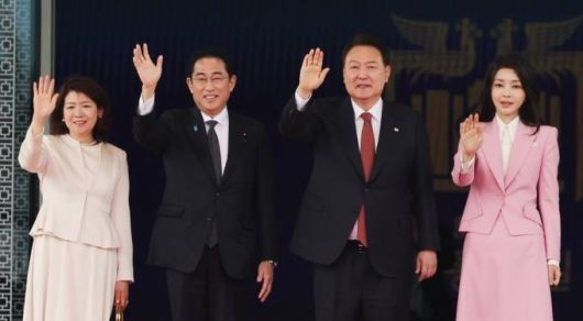윤석열 대통령이 기시다 후미오 일본 총리의 공식 환영식을 열고 맞이했다. 윤 대통령의 방일 당시 의장대가 나온 것을 고려해 같은 수준의 답례를 했다.