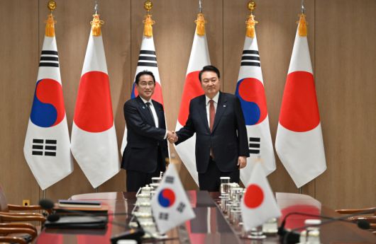 [서울=뉴스핌] 송기욱 김태훈 기자 = 윤석열 대통령이 기시다 후미오 일본 총리와 정상회담을 갖고 "기시다 총리와의 우의와 신뢰를 바탕으로 새로운 미래를 향해 한층 더 깊어진 양국 간 협력을 추진해 나갈 것"이라고 강조했다.