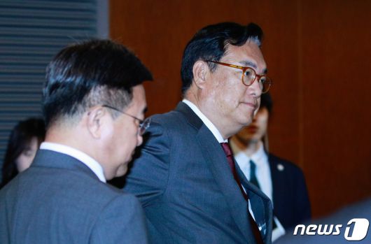 (서울=뉴스1) 안은나 기자 = 한일의원연맹 회장인 정진석 국민의힘 의원과 총간사인 윤호중 더불어민주당 의원이 8일 오전 서울 중구 롯데호텔에서 기시다 후미오 일본 총리를 면담하기 위해 이동하고 있다. 2023.5.8/뉴스1coinlocker@news1.krCopyright ⓒ 뉴스1. All rights reserved. 무단 전재 및 재배포 금지.
